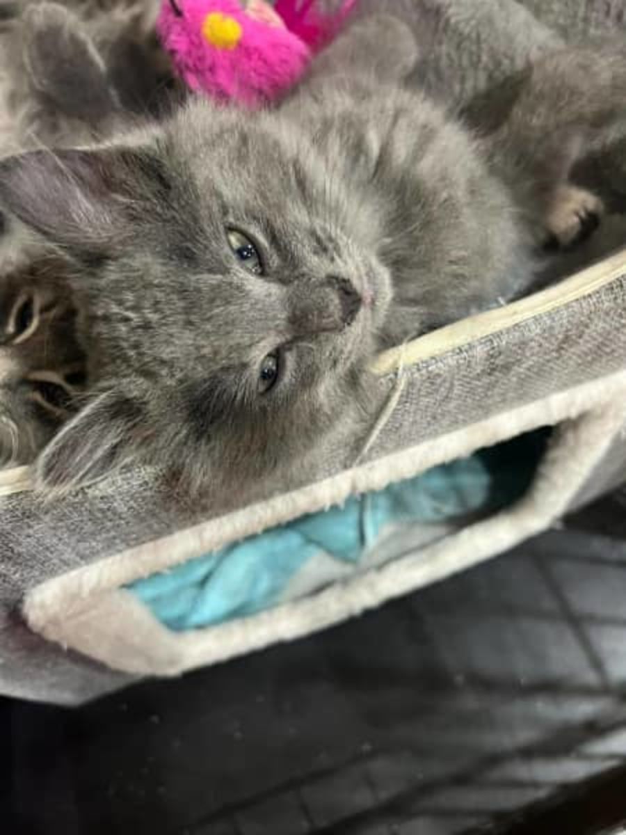 Herbie is all grey and is super chill and loves to play with his toys until he flops. He is always eager to eat first, play first and sleep first. Herbie and his brothers are always on the move, scampering and pouncing on toys and exploring every nook and cranny they can find. Despite their energetic nature, they love nothing more than to curl up in a cozy spot for a nap, purring contentedly. It's hard not to smile when you're around such charming little balls of fluff!