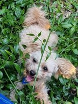 Marta, as often is the case with rescues, is shy (and a bit scared) so she needs her new family to have patience. She is tiny at only 2kg. She likes to bark to get attention but will run when you go to pick her up. She has taken her time but now follows you around and if standing still will come up and sniff/lick you but runs when you move - she will also cuddle on your lap (once caught) until you move.