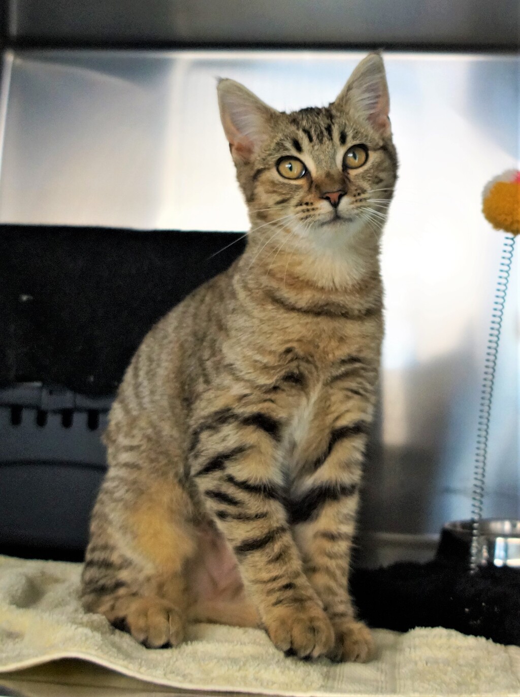 Hi there! My name is Beryl and I'm a 5 month old Domestic short hair kitten. I'm a fun-loving female with a beautiful Tabby coat. I'm very outgoing and love to play with all kinds of toys. I have plenty of energy to burn, so I'll keep you entertained for hours!