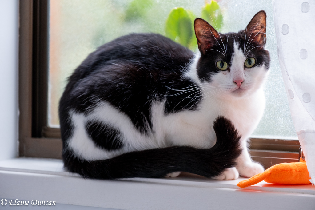 Her second favourite pastime is having a chirpy chat with her human companions. Her birdlike chirps are entertaining as well as endearing. If she is not chatting to her humans during pat time, she will be chirping to let you know she is changing direction or planning her next pounce while playing.
