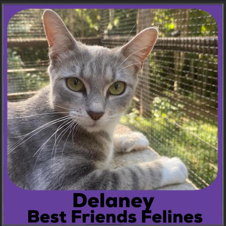 Delaney is a soft gentle soul, who loves cuddles, is happy to be picked up, and loves to be around her family. She is 100% happy being in a home with other cats and a small dog, and integrated into the household without even blinking. She hasn’t been exposed to young children in her foster home, but with her sweet disposition, she would be wonderful with gentle children.