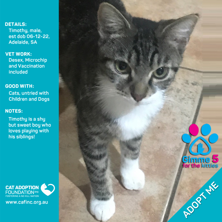 Donate to Timothy Just $100 Limited Time! at Cat Adoption Foundation Incorporated via Shout