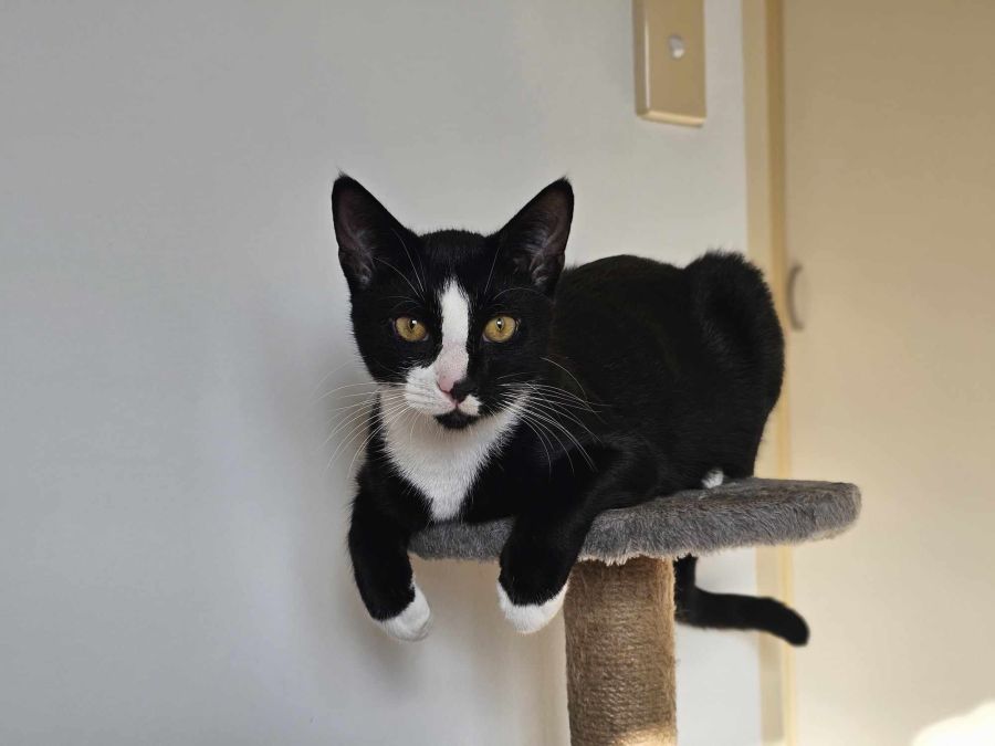 Hugo is a cute, playful kitten. He does not mind a cuddle and is very calm. He loves to relax and explore.