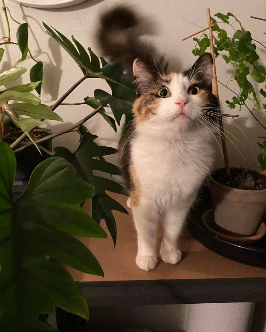 While Margarita seems very comfortable and relaxed around humans (often greeting her foster parents with a gentle chirp), she has not quite figured out this lap cat thing yet and generally prefers to sleep in her own space (the higher the better – or is that just because she is trying to escape her kitten?). Despite being a mum, Margarita is still really a kitten herself, and she plays like it! She loves to run, jump, and pounce, and particularly enjoys a string toy or a small toy she can bat and throw up into the air. If you also have a cat tunnel, this would be an added bonus as Margarita loves to sprint through one during her daily zoomies. If you are looking for a way to bond, play (and food) are definitely the way to do it!