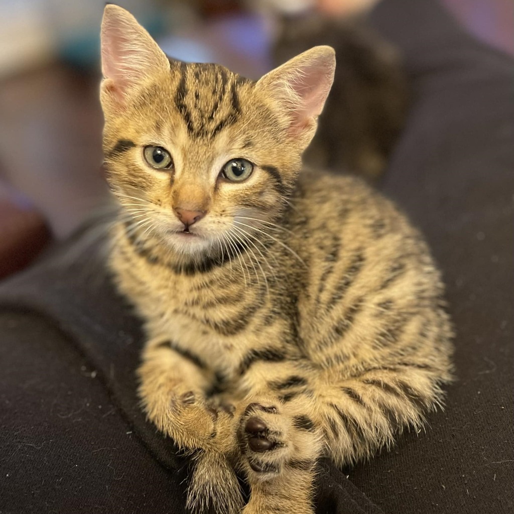 Ladon is an adventurous and playful, loving little boy. He has the most captivating stripes and spotty belly. He loves being your best friend and having your undivided attention, and will reward you with his ever-present purring. In the evening he loves a warm lap to curl up in. Handsome little Ladon is litter trained. He has not been around dogs.