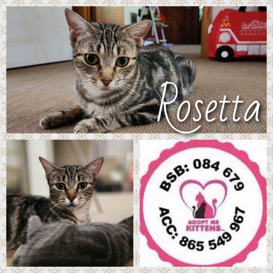 If you want a sidekick, a cat who will follow you, lie wherever you sit, greet you with her voice and accompany you to the loo, who is also low maintenance and happy to relax whilst you're not home. then Rosetta is your girl.