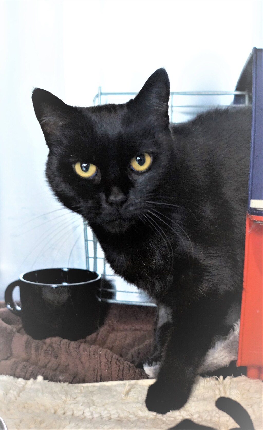 Introducing Chilli, the elegant domestic shorthair cat with a lustrous black coat. At eight years old, Chilli is a spirited female who loves receiving soft pats from her humans. She has a shy personality, but once she warms up to you, she will show you affection like no other feline.
