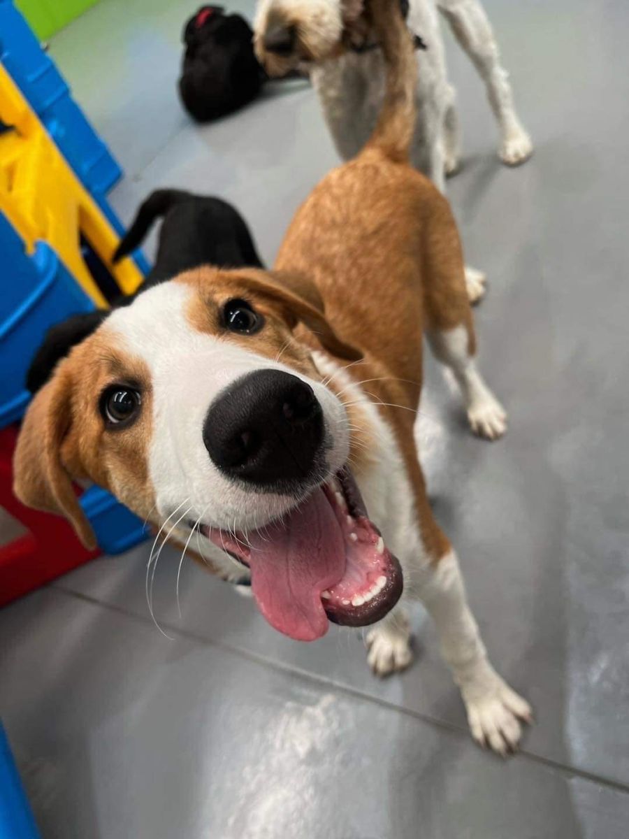 I’m a very social young fella. I love all people and dogs but can be too excitable, so a family with older kids would probably be awesome because I sometimes forget I’m not supposed to jump up. I’d love another dog to play with, but I can be too insistent with some dogs at times when they may not want to play so I need you to help me regulate my play and let me know I need to back off. I have no bad intentions, but I sometimes get a bit frisky with my playmates and try to hump. I’m learning not to do that.