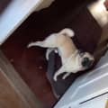 He eats and sleeps well and he’s always ready to cuddle on the lounge. He is house trained and able to use a doggy door.