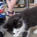 This boy is very social with other cats and young kittens, so he would fit right in with your cat if you have one. He has not had exposure to dogs so we do not recommend he goes to a home with a dog or where there are plans to get one in future.