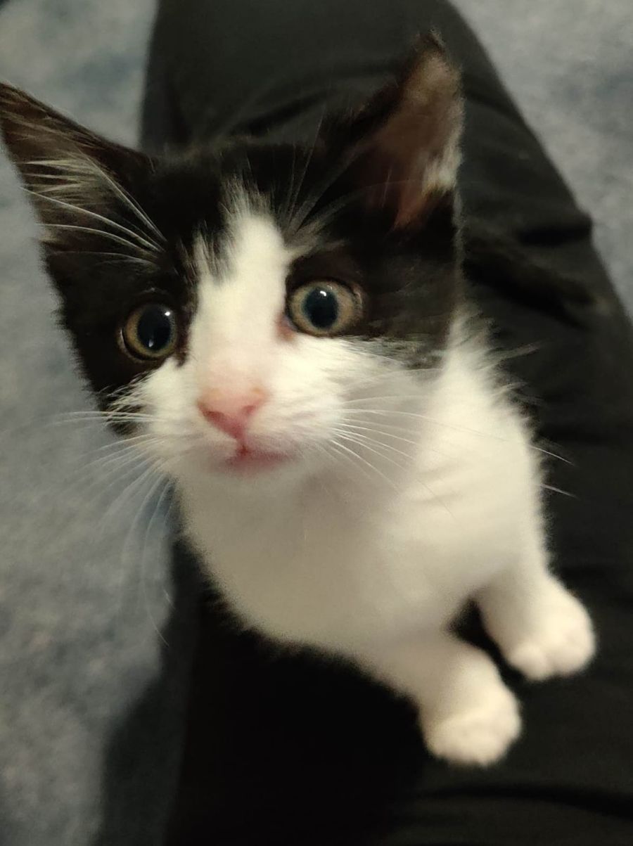 Anja was surrendered to a local vet after being found alone at 4 weeks old. She is a very sweet, petite girl that loves attention. She will be the first to claim a lap if you sit down but also loves to sleep in the sun coming in the window. She loves her food and kitten milk. She is extremely loving to all the other foster kittens and will hold them tight to wash them. She will make a wonderful family pet. She will be best in a home with no dogs as she finds them scary.