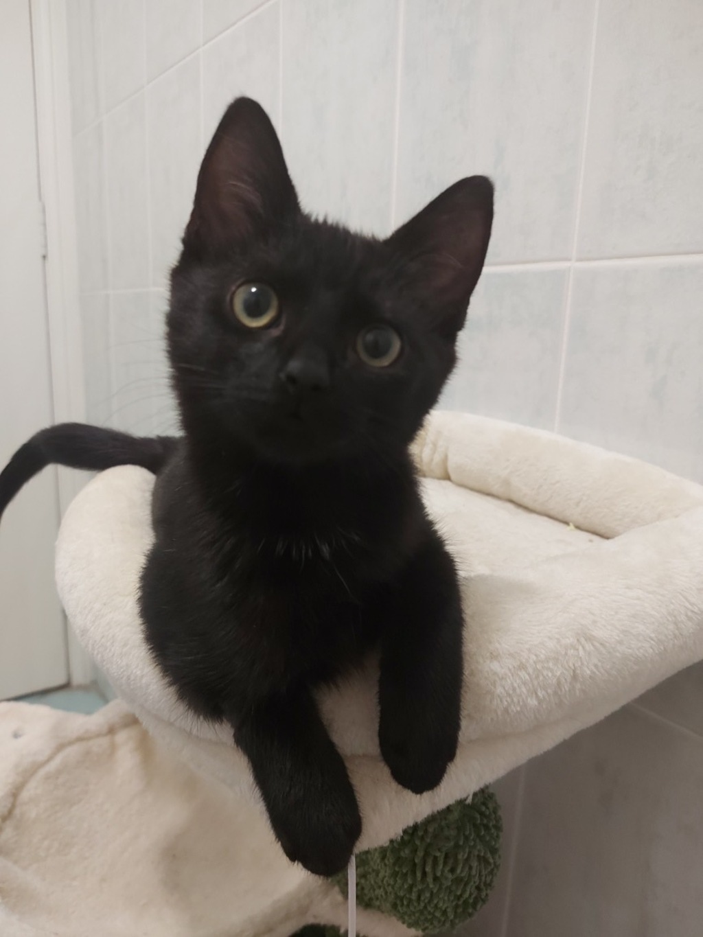 He will need lots of places to hide, scratching posts to climb and enrichment to keep his growing mind stimulated. This could include a plethora of toys, puzzle food devices, feline companionship and a whole lot of cuddles.