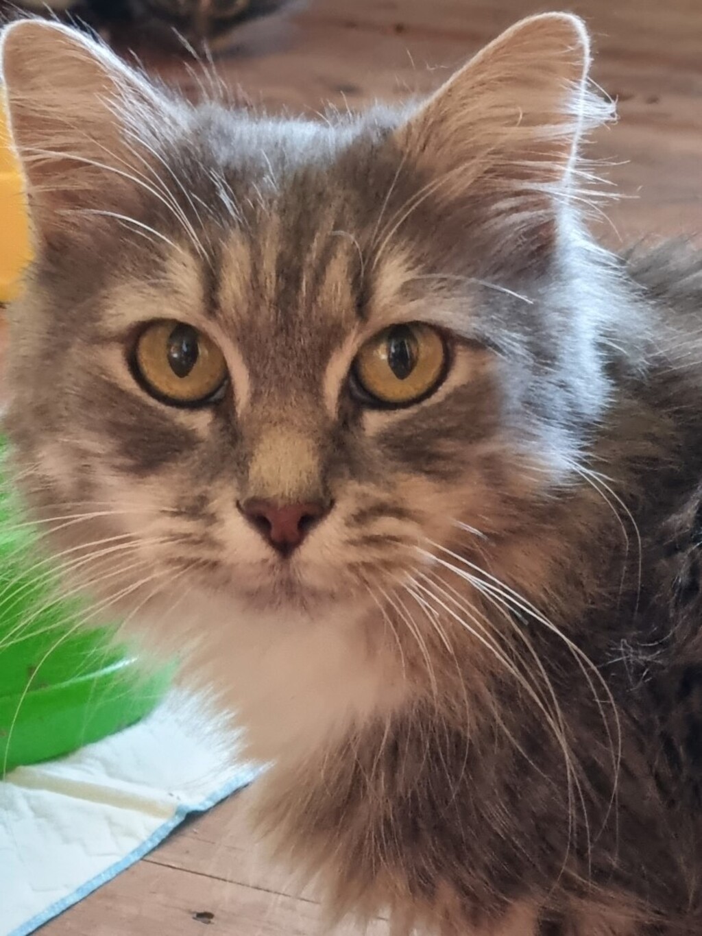 She's experienced in sharing with other pets and is flexible about her new special people. She does need a brush to keep her coat looking good and even if she grumbles, she will still love you deeply. She loves her warm cozy indoor life and will enjoy an occasional supervised walk with you in an enclosed garden during the day, then safe inside every night to keep you company.