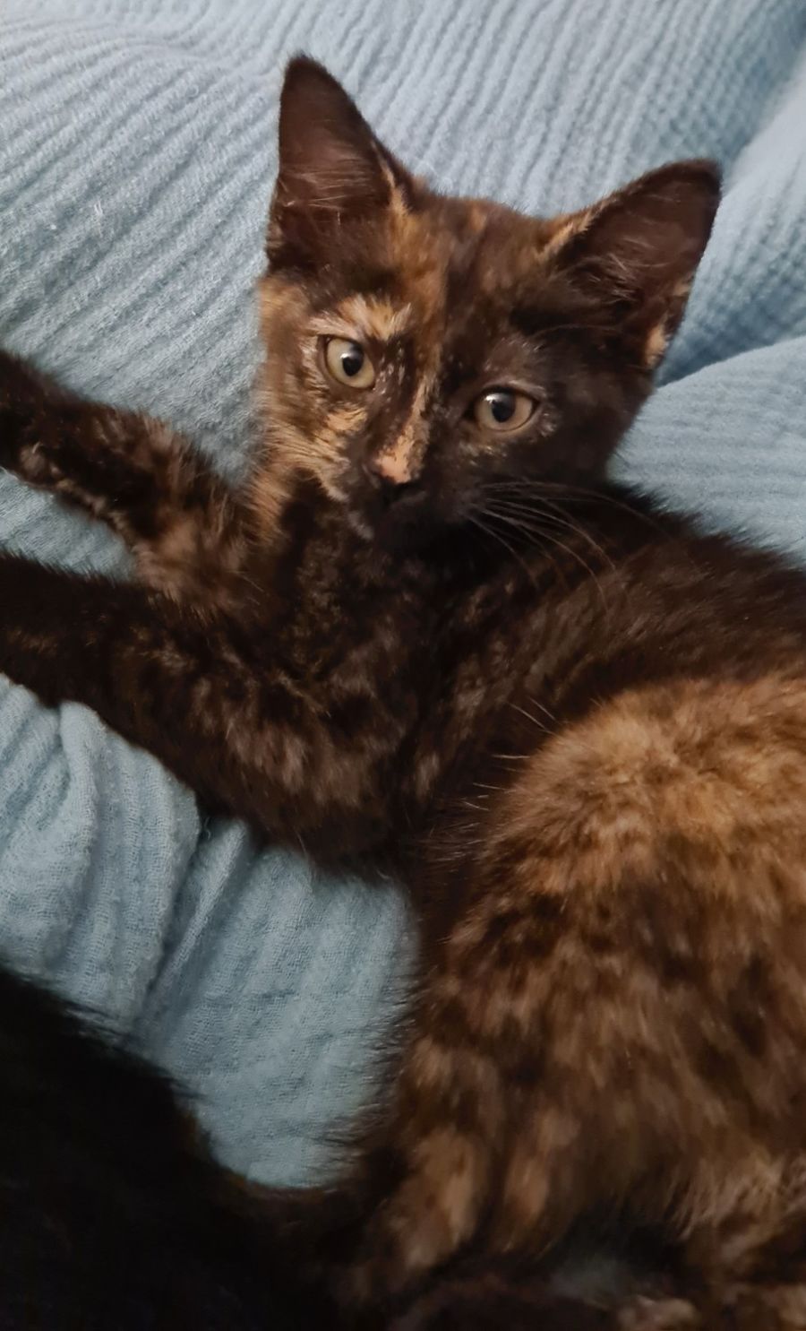 Peeta is an active and affectionate female kitten who is always ready to shower her family with love and purrs. She loves to play, romping around with energy and enthusiasm. Peeta is an absolute delight - she's the perfect mix of fun and friendliness. She loves people, especially when they give her lots of cuddles and scratches behind the ears. Peeta is truly a Purrinator - she'll have you wrapped around her paw in no time! This little love bug will make a great addition to any home looking for a happy, loyal feline companion.