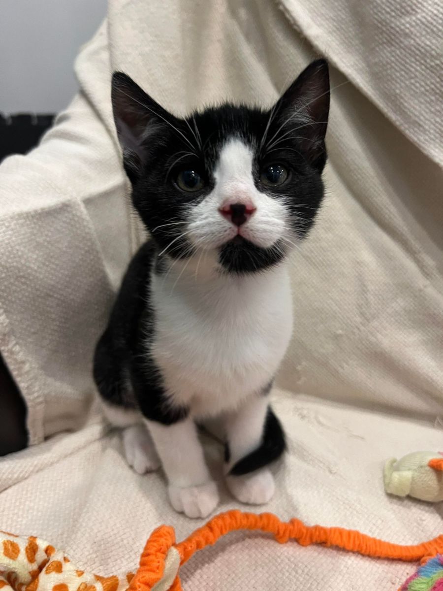 Meet Panda – the inquisitive cuddle-bug. He is a curious and confident kitten who loves chasing his brother through the cat tunnel, ferociously pouncing on his toy avocado, and napping on his foster mum’s chest. Panda purrs like a freight train and will leap out bed and run to his foster mumma when she enters the room, patiently waiting to find a cosy spot on his chest or lap to curl up in.
