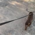 He adores his daily walks on leash, although pulls hard to begin with, he settles well after we’ve been walking a while.