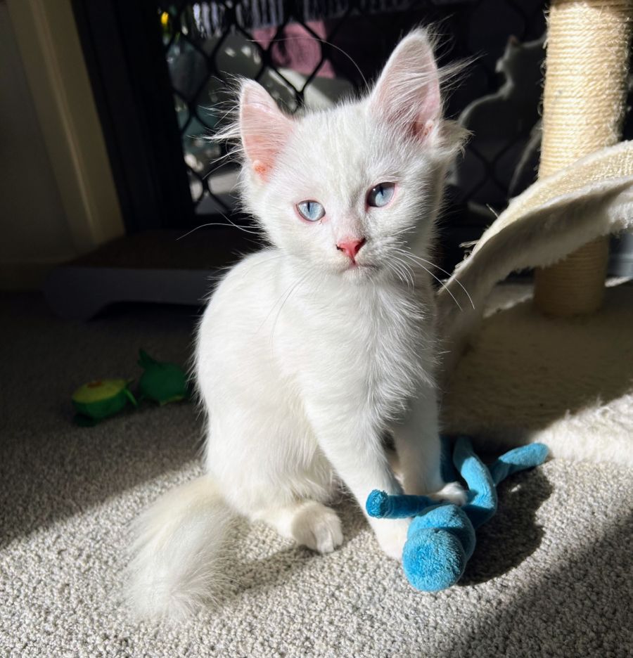 I'm a mischievous and playful boy with stunning blue eyes. I may be deaf, but that doesn't stop me from living life to the fullest! I'm on the hunt for my forever home, and I hope you'll consider me as a new addition to your family.