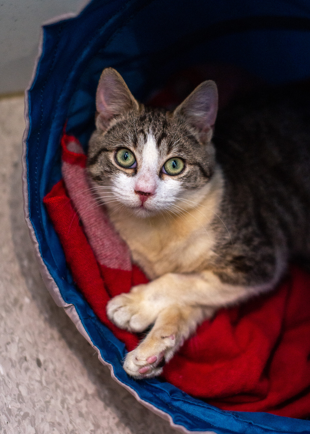 I was raised in a loving, social household where I grew up with a variety of humans and fur-friends alike. If you have small humans at home, I think we'll be great friends! All I ask though is that I get lots of pats and cuddles and I'll supply complimentary purrs. I have also grown up with dogs and cats and I was good friends with them so if you have furry friends (or a hairy husband/partner) at home, it will be a great match!