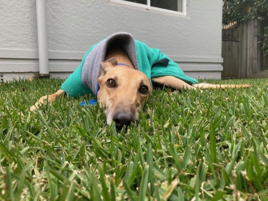 She has become a lot more independent and copes with being left for short periods inside or out (although she does have the full time company of another chilled Greyhound in her foster home). She is super happy when her people come home and will often give a few 'roos' and the silliest Greyhound smile.