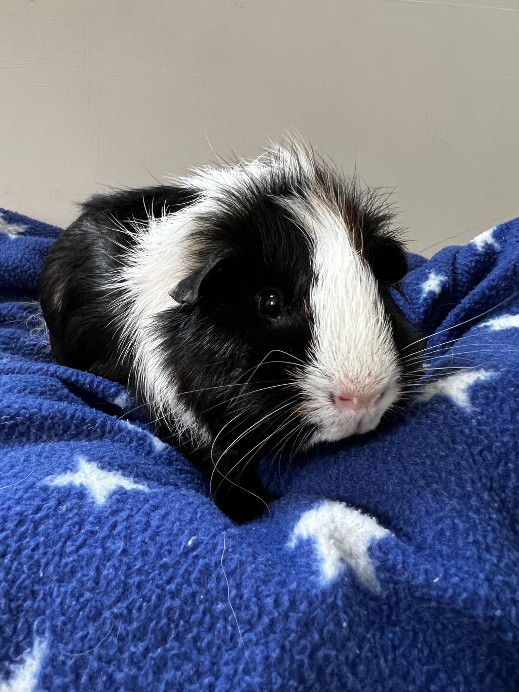 Raj, currently living with Leonard and Rubeus, is our longer haired beauty. He has luscious locks located primarily on his bottom with a beautiful multicoloured coat. Raj gets along very well with his sibling/friend, therefore it would be ideal if they could be rehomed together; however not a must if you have another social guinea pig needing a single friend.