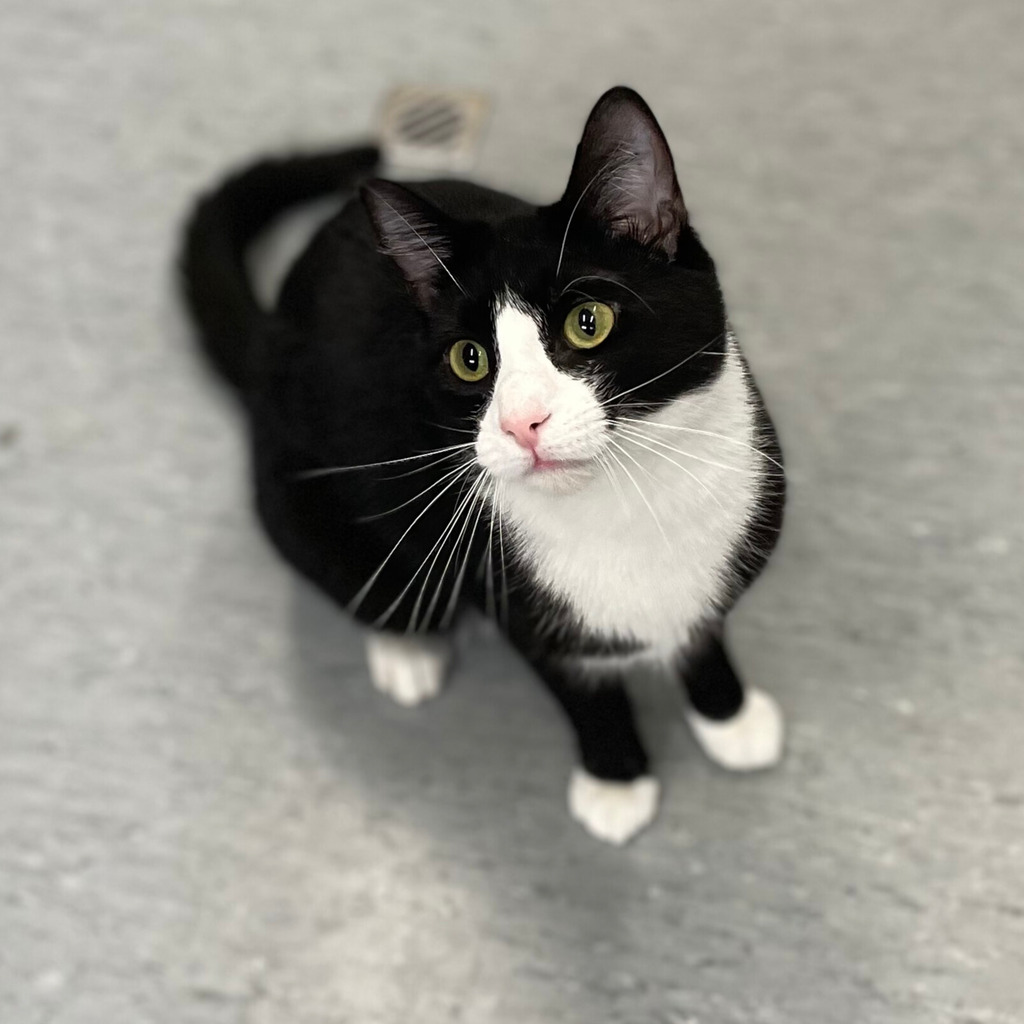 Olive loves to engage in activities to let out her playful energy. Whether it be a game of chase with ping pong balls, wide-eyed hunting of pom poms, or batting at string toys, she's always game. Olive also loves high vantage points. Don't be surprised if you find Olive perched on top of the fridge or a high shelf, merrily observing the world around her!