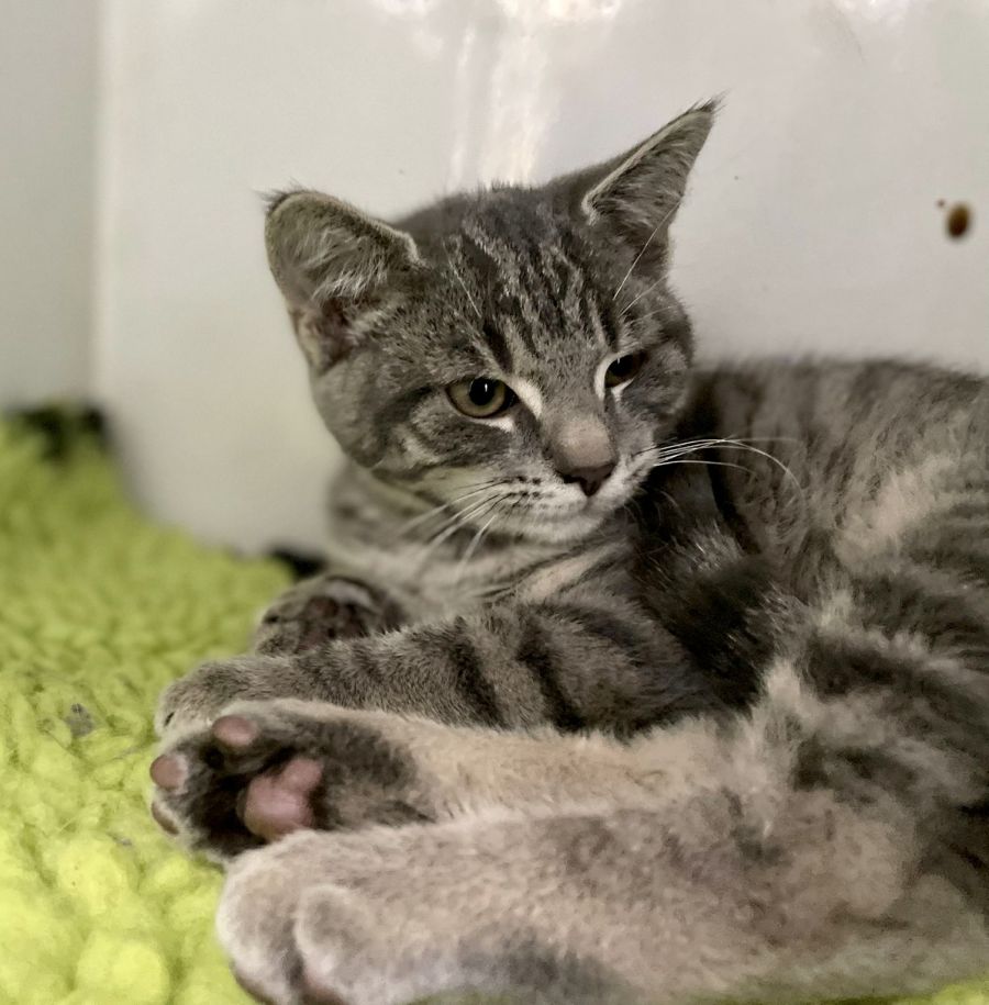 Smokey is a 3 month old male Domestic Short Hair who is sure to win your heart. He may be shy at first, but give him a little bit to settle into his new environment and you'll see his true personality emerge. Sweet and lovable, Smokey loves to play and cuddle up with his humans. He is sure to make a wonderful addition to any family looking for the perfect companion.