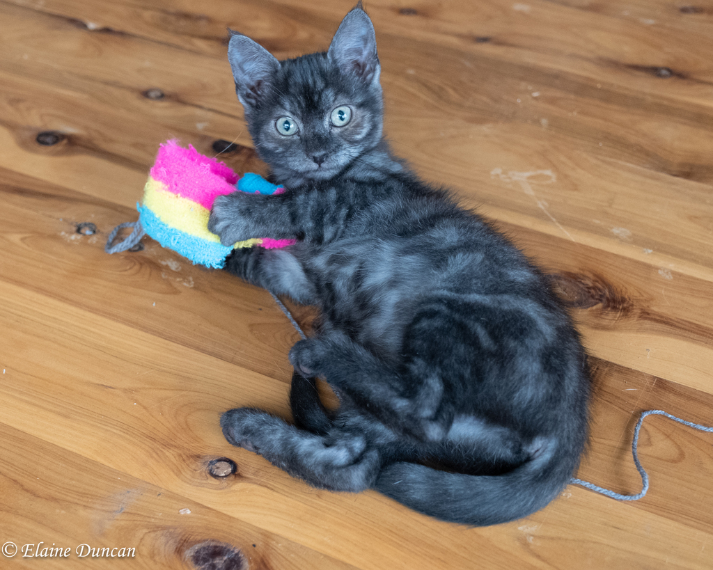 Miss Maggie is both a playful ball of energy and a super affectionate snuggle bug. It seems as though every single thing can be a toy for Maggie. Not only does she love dangly kitty toys and playing with her brother, Mac, but she also has a great time with paper bags, old dry leaves and balls of wool. Maggie is also excellent at launching herself playfully off the top of the cat scratcher when Mac comes past!
