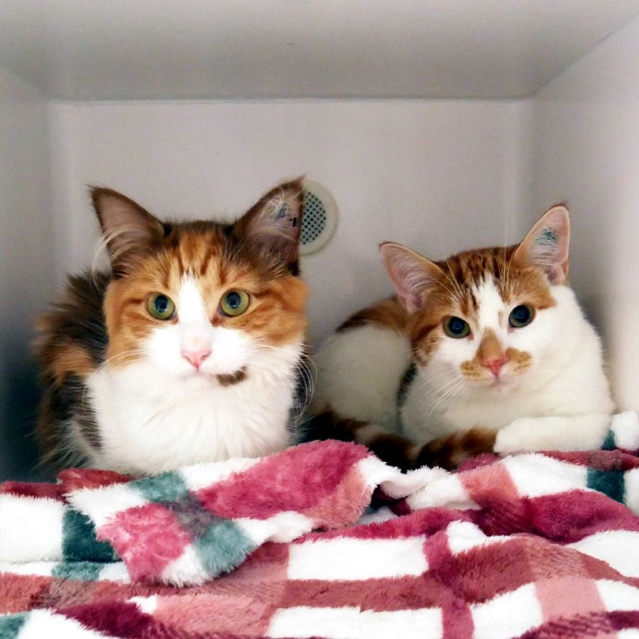 Magnolia (Tortoiseshell) and Catsby (Ginger Tabby) adore each other and are a ready made feline family.