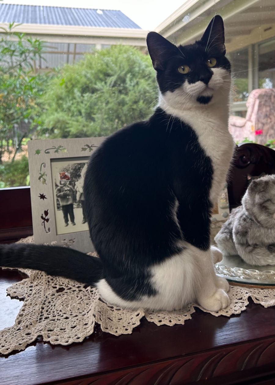Tara is simply the sweetest, snuggliest, purriest little girl. She loves her humans and follows them everywhere. She loves to snuggle up with you on the couch or in bed so is the most perfect hot water bottle for the winter. Tara loves to talk to you & her cute little meow becomes more vocal nearer to dinner time. Roast chicken is her absolute favourite.