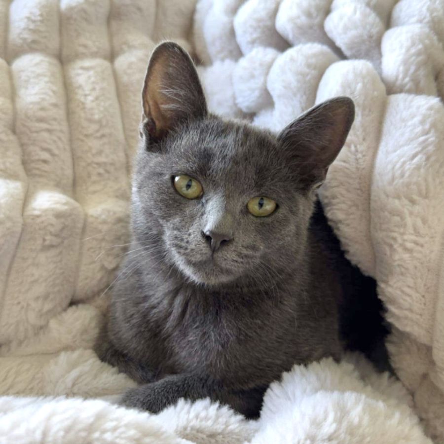 Mae is our 14 week old DSH (Domestic Short Hair) kitten, who has a beautiful blue coat (similar to that of a Russian blue). She weighs in at just under 2kg (quite a petite little girl).