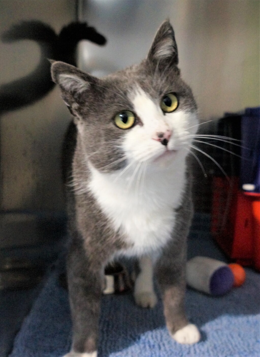 Meet Pembleton, a stunning Blue and white Domestic shorthair cat who's looking for a new home to call his own! Pembleton is a male cat who is 2 years old, and he's just as handsome as they come!