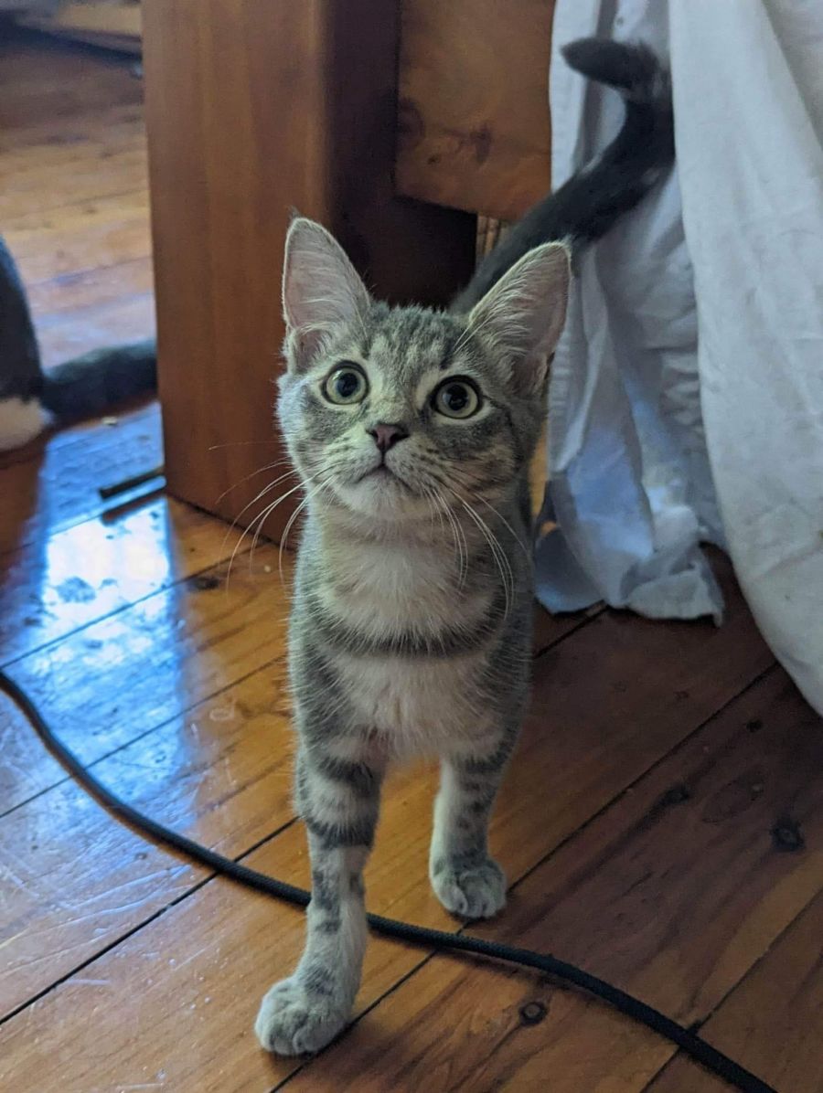 This stunning kitten is 4 months old shy girl who blossomed into a fun loving meerkat is ready to find her loving home.