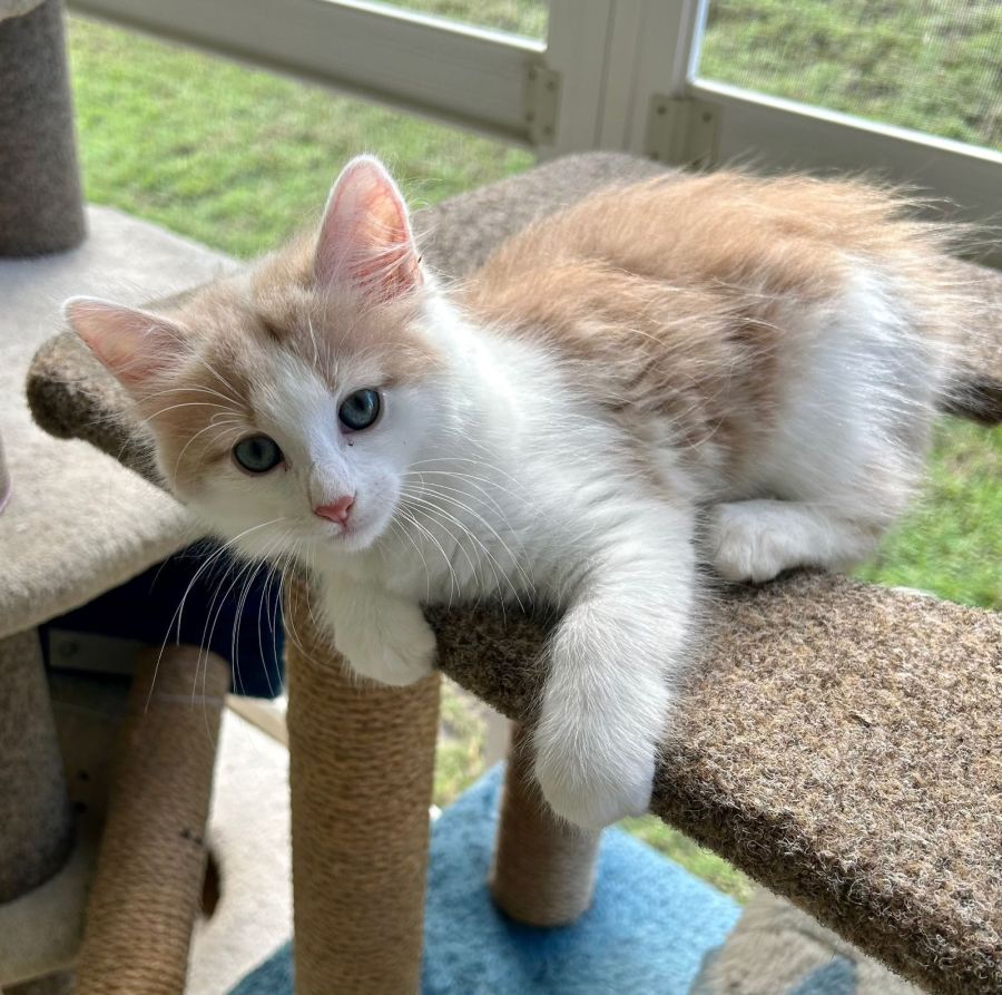 Meet Lizzie, the Queen of her kingdom! This gorgeous caramel and white cat is sure to steal your heart with her cute and soft demeanor. Lizzie will be your most loyal companion and is always by your side. She loves spending time with her people and being cuddled, so she'll be sure to give you lots of love and attention in return.