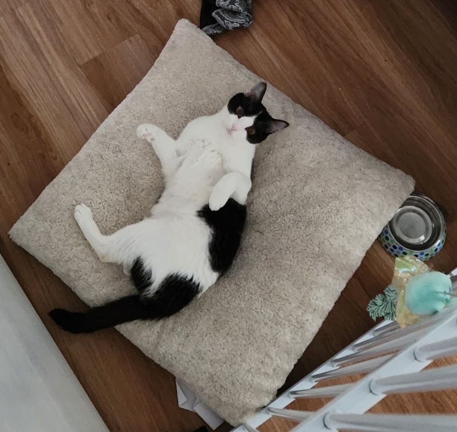 Thelma loves toys! She happily bats about a tennis ball, but enjoys toys that move around either mechanically or at the end of a stick. Thelma would thrive in a home with another cat (or dog) with loving, and patient hoomans.
