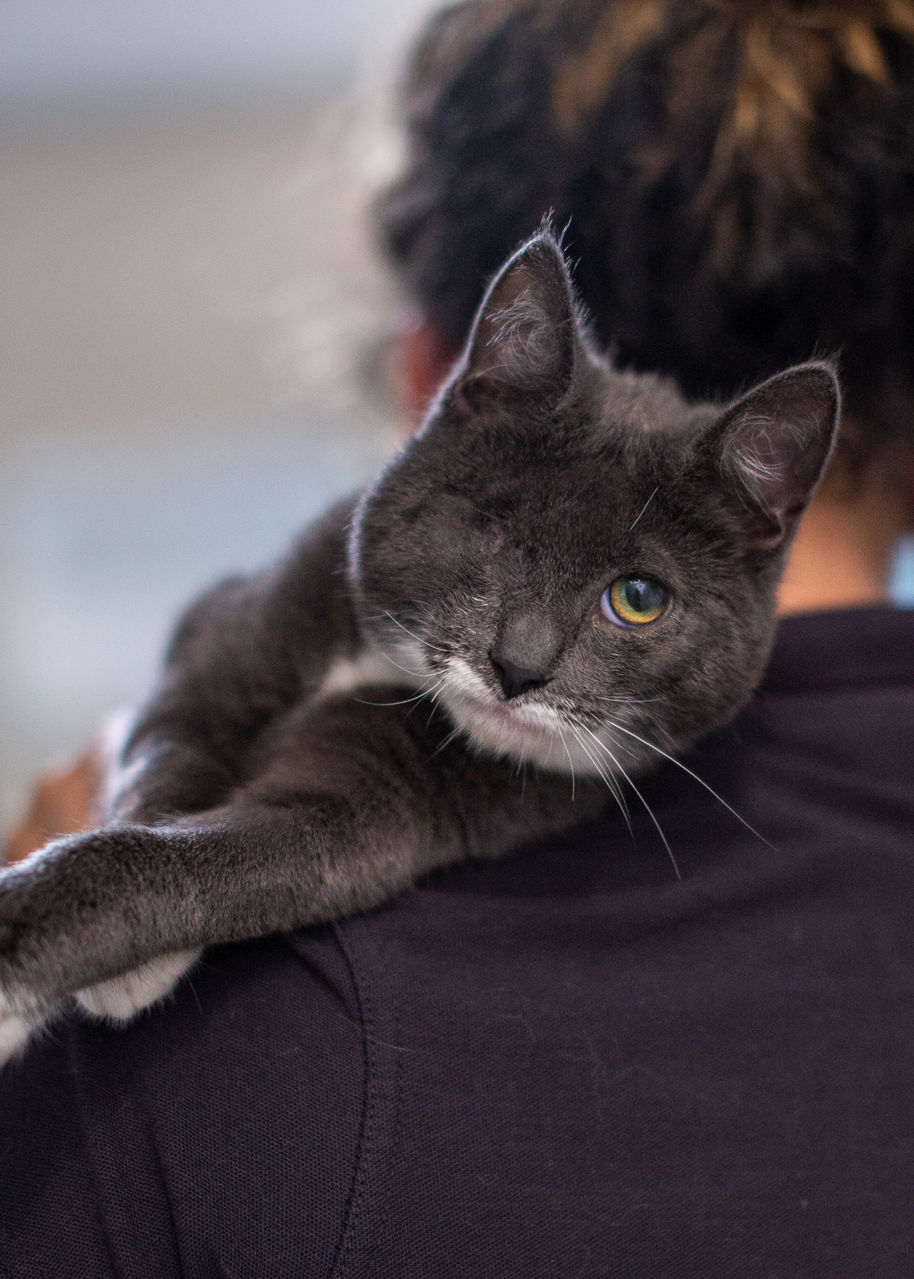 This lovely little one eyed baby will win you over immediately, as he climbs you and gives you cuddles on your shoulder. He is the best cuddler.