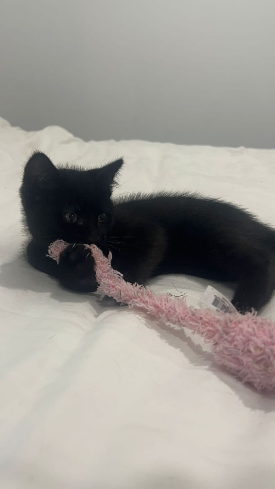 Meet Loki, a playful male kitten with heaps of energy. Loki can almost always be found running around with a toy in his mouth. But don’t worry, that energy doesn’t last forever. Loki also loves falling asleep on your lap or in your arms, as he’s an affectionate boy through and through.