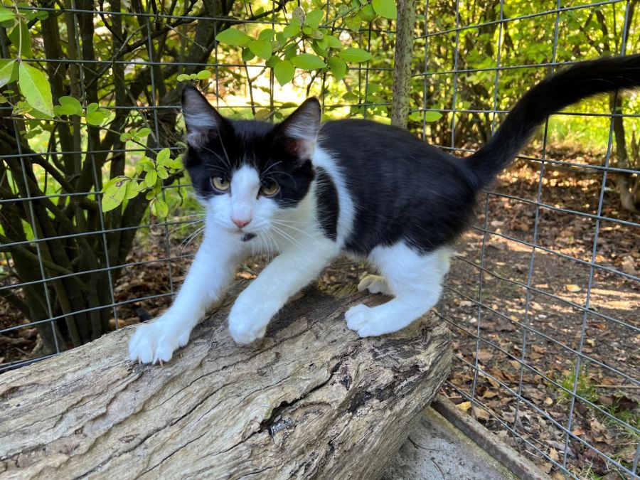Kiwi is dog and cat friendly and he loves nothing more than instigating a game of chasey and wrestling with the dog. He is litter trained.