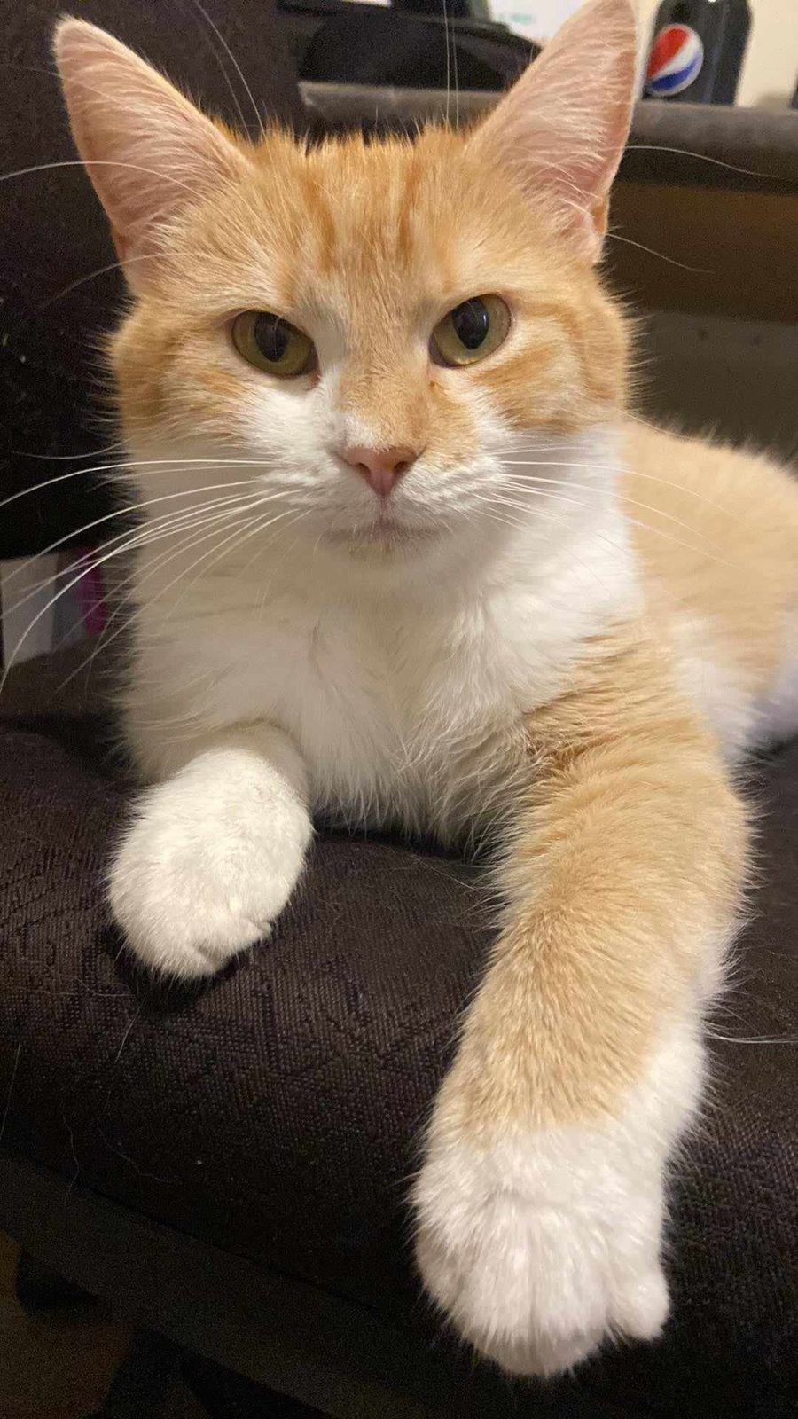 This lady is a super gentle kitty who gets along with everyone and everything. She is good with other cats, dogs, and of course her humans. She enjoys sleeping, eating, and playing with toys. She also loves to curl up next to you on the couch and seek out neck and back scratches.