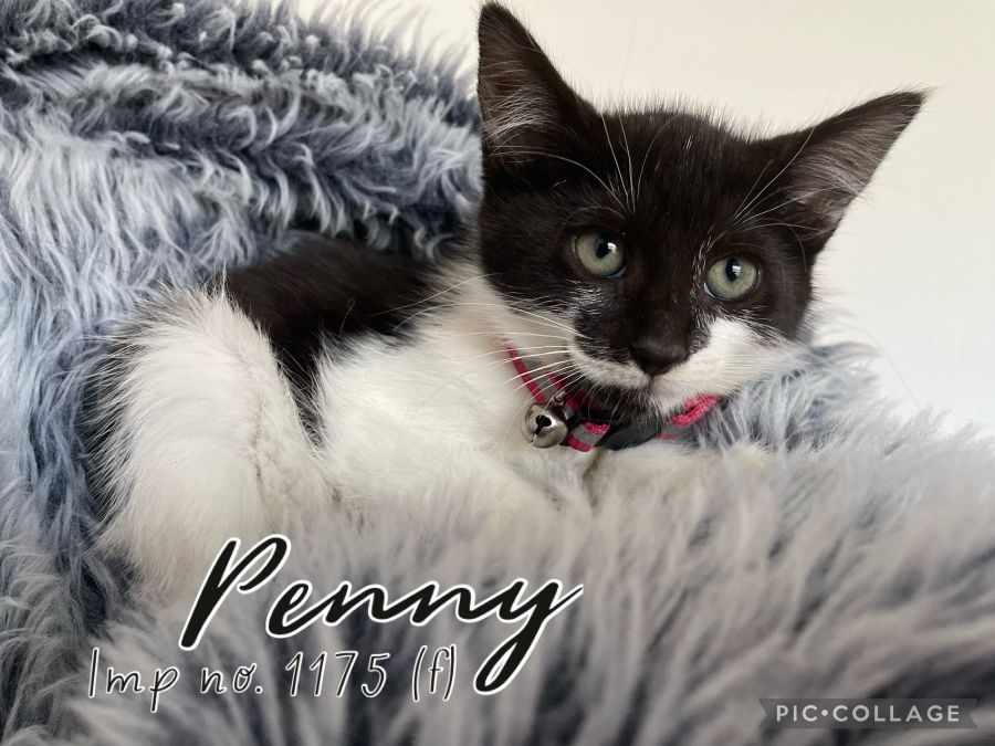 Penny is a curious and playful female cat who loves to explore and spend time with her siblings. Though she can be a bit shy and hesitant around humans, Penny is warming up quickly to her human companions. She has been learning how to play with toys, which has been helping her come out of her shell and show off her spunky personality. Penny loves spending time with people, but she is content snuggling up for a nap or playing quietly by herself if needed. With some patience and love, this gentle kitty will be your best friend in no time!