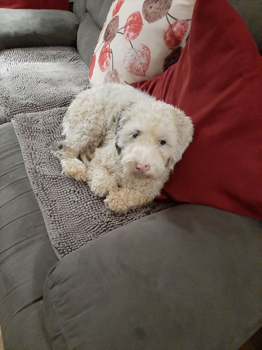 Marshmallow is and inside dog, and loves to cuddle next to you on the couch, and snuggles up to you in bed. She's the best hot water bottle.