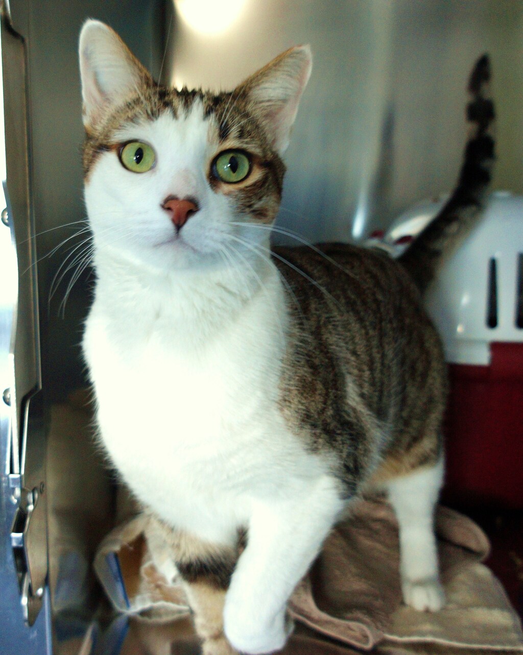 Meet Tiger - a handsome domestic shorthair tabby and white cat who is looking for his forever home. Tiger is a sweet and gentle 9-year-old feline who has a calm demeanor and loves to explore his surroundings. He is a curious cat who enjoys checking out new things but also loves to take cozy naps in a warm bed.