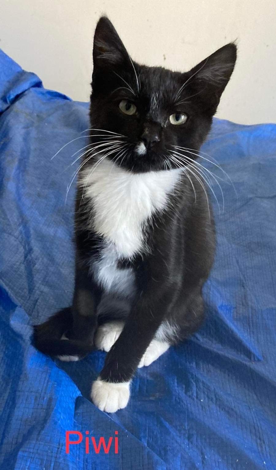 Piwi (approx DOB 21/1/23) Is a beautiful black-and-white little boy with an adorable white spot on his chin. Piwi loves to find nice warm places to snooze and adores getting into mischief with the other Kittens. He is often so busy exploring his environment or sleeping soundly that he will need to be called a few times for his food. If you think you have the perfect and loving home for Piwi then did give Deb a call on 0481 284 578.