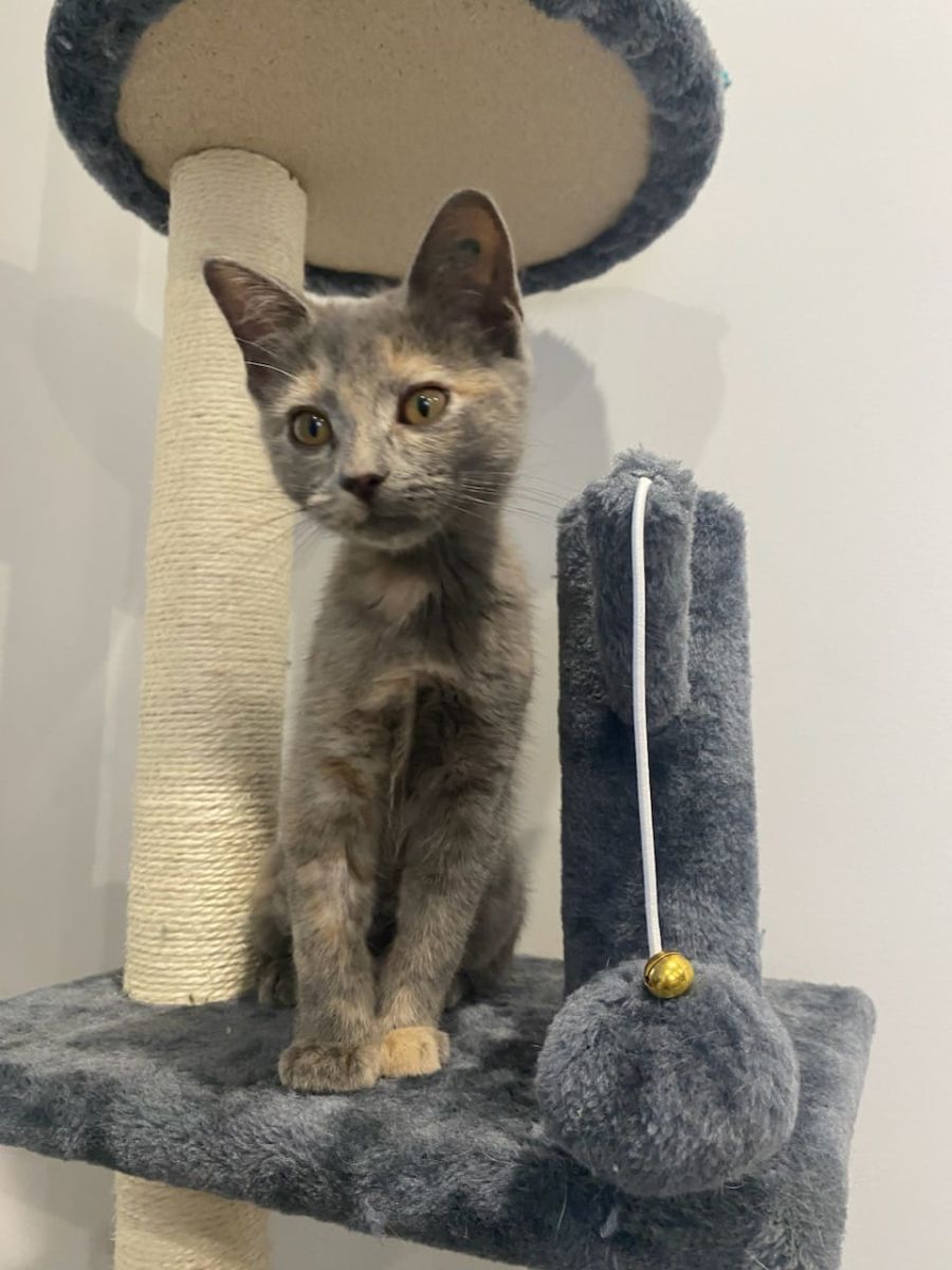 Smokey (female blue cream tortie) is sweet and affectionate and likes to be carried around like a baby. She is playful and loving and loves to play with water! She's litter perfect and not a fussy eater. She loves watching TV (cat shows only).