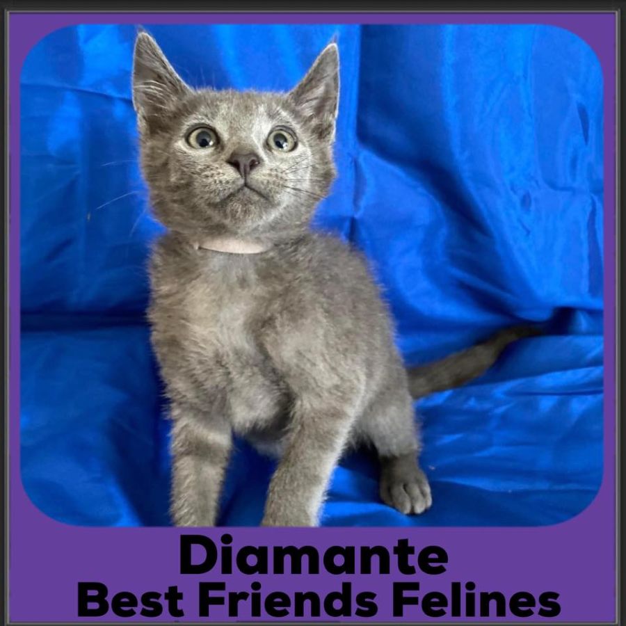 Run, don’t walk, to meet the ever-so-pretty and snuggly Diamante! Didi (as she is affectionately called) is a conventional quiet girl—she doesn’t make noise as she moves about, and you’ll look up from your day-to-day tasks to realise that she has been there next to you the whole time. One of a litter that has been completely hand-raised by humans, Diamante is used to humans and also enjoys capering around with her sibling cats. Always first to her food dish in the mornings, after meals Didi likes to cavort around her carer’s ankles and show her love with a teeny-tiny purr.