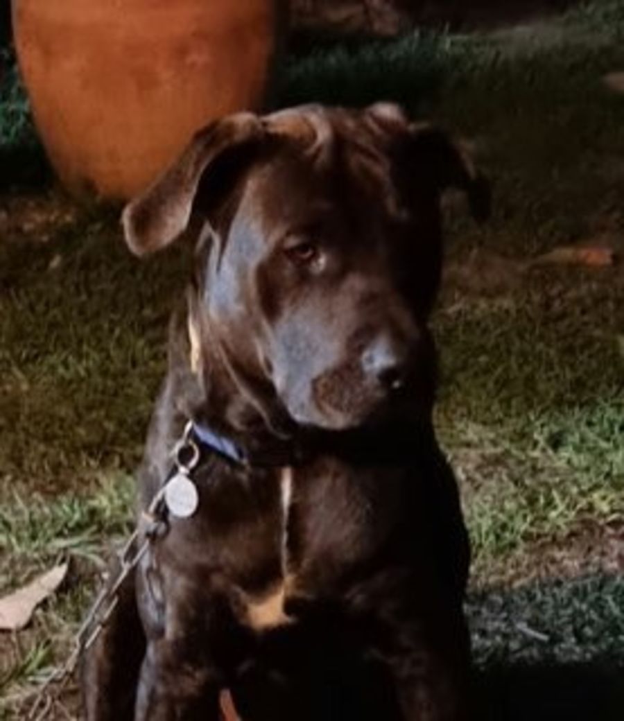 I am 9 months old brindle Mastiff x Rottweiler and I get along really well with other dogs. I love my walks and playing at the beach. I listen to commands very well - Stop! Wait! Come! and Sit! etc.