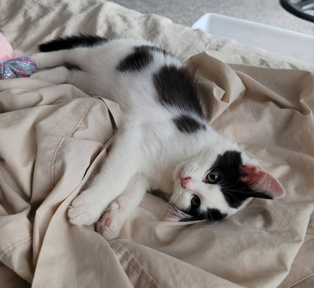 Fig Newton loves to climb, but mostly just to get your attention - he's actually very affectionate! He's still in his playful phase and prefers to stay on the ground, thank you very much. Fig Newton isn't shy about voicing his opinion either - he likes the sound of his own voice! He will also rouse other kittens in the shelter to get up to some mischief.