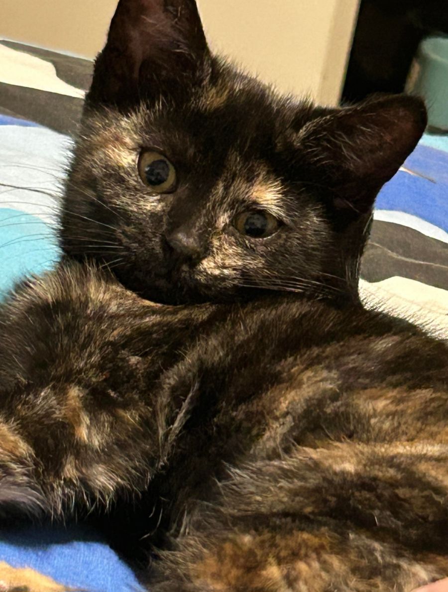 I am a lovely kitten seeking a family to love and take care of me. I can be homed with children and other cats. I haven't been tested with dogs. I must be kept strictly indoors only.