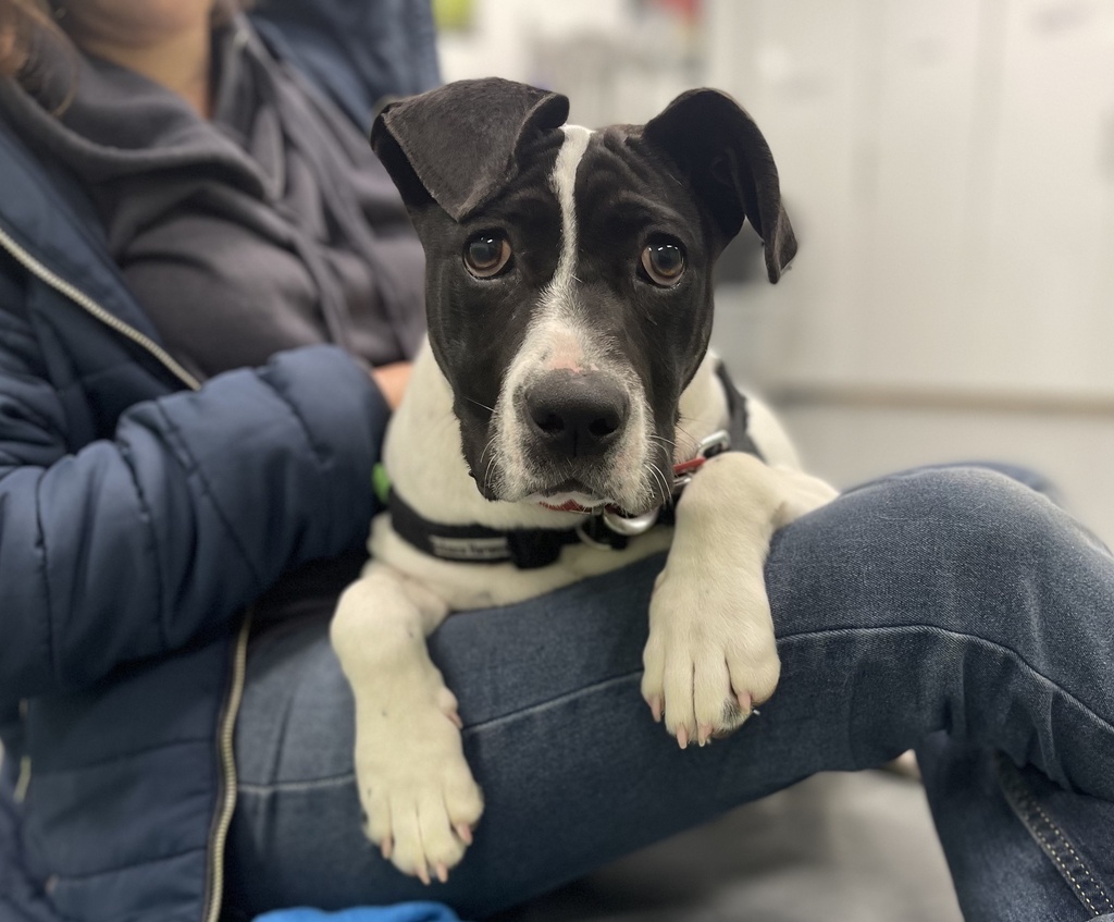 Cricket loves being around people, especially kids, and would do great in a home with either children or adults. She has also been dog friendly in her interactions so far, and could be great in a home with an adult dog to teach her all the things she needs to know!