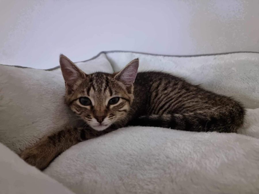 I was only a little baby when I found myself lost and without a mum. Luckily I had my brother, but we couldn’t find very much food on our own. We got really hungry and very skinny but we stuck together. It was Easter time and we hoped the Easter bunny might help us, but even better - we were rescued by a nice human! My brother and I quickly gained weight and are healthy now that we have been in our foster home. When the vet checked me, she said I had a very soft heart murmur. She explained that even though it might sound scary, it can be common for puppies and kittens to have a heart murmur that they grow out of. I’m hoping to find my forever home and my forever family. I’m a smoochy girl that love pats and cuddles. Sometimes I do really cute tiny meows to ask for more pats. I really enjoy playing with my brother, my toys and my humans. I can’t wait to meet you and show you how much love I have to give! If you would like to meet me, please speak with the team at PETstock Gosford.