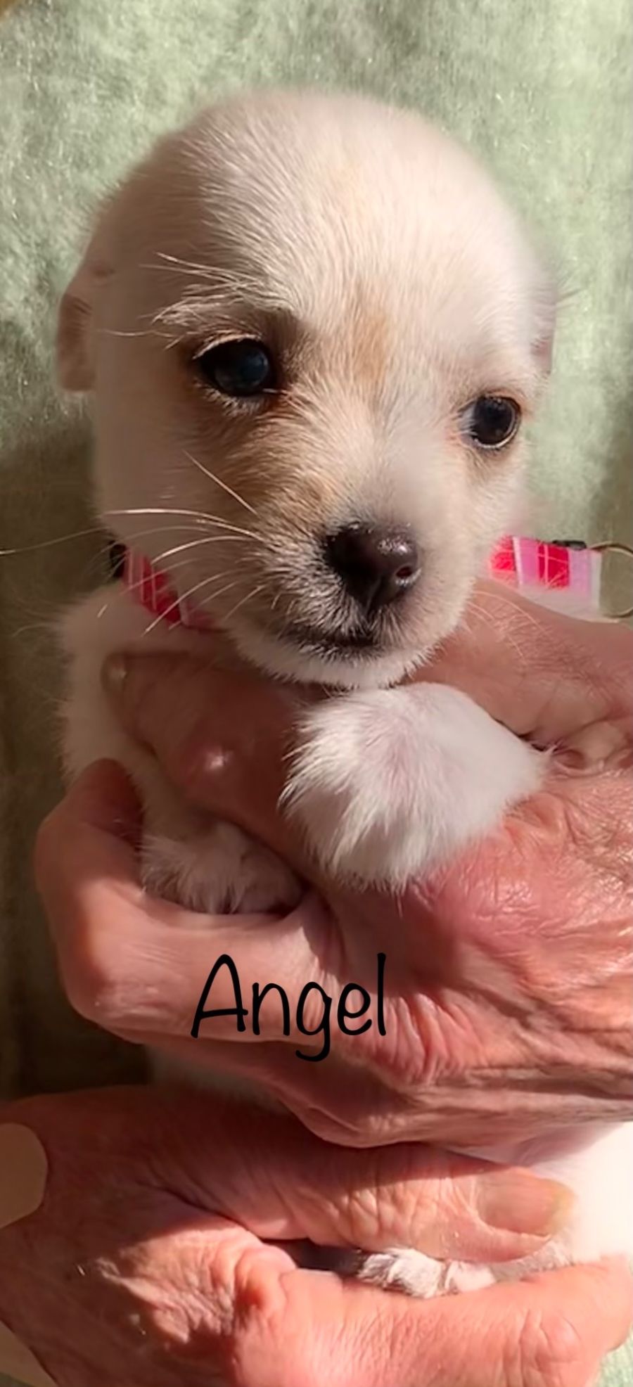 Sweet little Angel is an 8 week old Chihuahua/Maltese mix who has found herself in Wally’s Doggie Rescue care along with her mum and siblings.